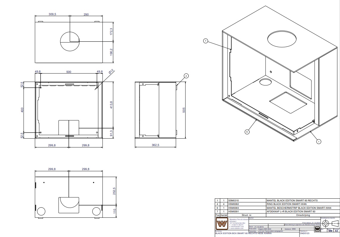 Wanders S 60 levé prosklení jsou moderní krbová kamna s čistým hranatým designem a částečným rohovým prosklením. Prosklení může být levé nebo pravé. Těmito kamny si zákazník může dopřát efekt krbu bez nutnosti stavebních úprav. Velice elegantní řešení je absence kličky a otvírání za pomocí originálního klíče, který obdržíte s kamny. Sklo je ohýbané z jednoho kusu. Ovládání je pouze jedním šoupětem v přední části pod dvířky, takže obsluha je jednoduchá a nic zbytečně nenarušuje čistý vzhled kamen.